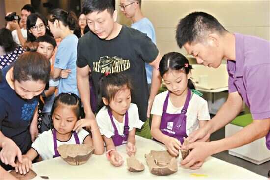 4 公众考古 ■南汉二陵博物馆“小小考古学家”专场活动。“小考古学家”们小心翼翼地拼对着碎陶片。