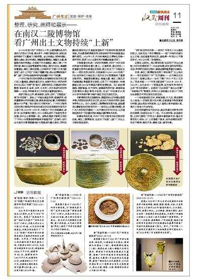 文物修复后的进一步研究和阐释,则对广州历史研究和城市发展具有重大意义。记者获悉,通过研究,一批重要史前和先秦遗址的发现,极大充实了广州地区史前——西汉的考古材料,为探索距今6000-2000年前广州以至环珠江口地区的人类历史文化图景提供了重要实物资料。南越国宫署遗址、南越王墓、南汉二陵及历代城墙遗址等重要考古发现,记录了广州自秦统一岭南建城以来2200余年绵延不断的发展轨迹。羽人船纹铜提桶、波斯银盒、汉代珠饰、玻璃器和西村窑、南海神庙及明清码头遗址等考古发现,实证广州自秦汉以来2000多年持续不断与海外地区交往交流的历史。