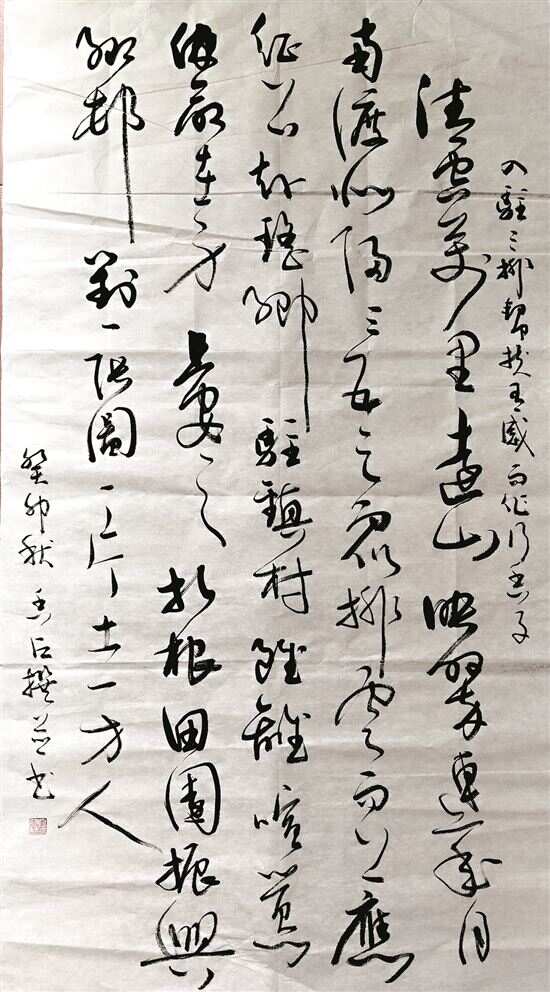 除了发掘与整理,李香占个人在书法的探索上也有深刻的心得体会,他从颜真卿、柳公权、赵孟頫的楷书开始研习书法,后期学习“二王”,近期开始练《孙过庭书谱》,同时涉猎篆刻印章,他自己创作了大量乡村振兴题材的诗词,随而用书法的艺术形式进行表达,进一步助力乡村文化振兴。