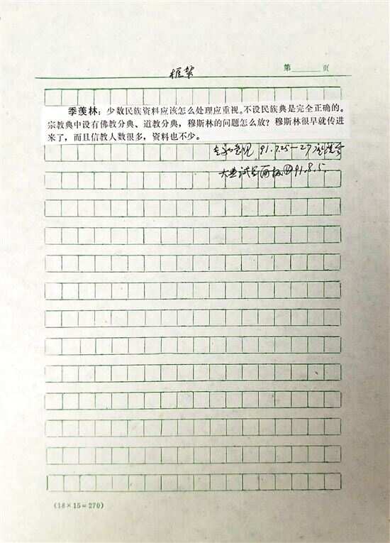 ▲1991年召开的《中华大典》工作研讨会,季羡林先生的意见打印稿,当时计算机初流行,以打字打印为时尚。