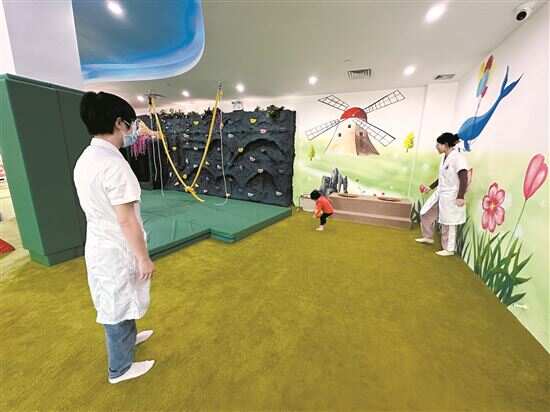 日前,新快报记者在番禺区妇幼保健院(何贤纪念医院)见到,在保健大楼6楼,作为广州地区最大的情景训练场地,一名康复师在这个占地430平方米的场地里,正带着小朋友进行康复训练。“这个空间里没有一根柱子,所有的设施都是‘适儿化’的,根据儿童身高、使用习惯、审美进行设计。”该院儿童康复科主任何敏斯介绍说,这里设有模拟小舞台,可供儿童进行舞台表演,有一年四季不同的场景,有毛绒绒的仿真动物,有色彩鲜艳的设施,还有儿童洗手间,各种友好的社交场景,用于促进儿童运动功能、感觉统合能力、手眼协调能力等的综合发展,让儿童能够更好地将在康复训练中学会的各类技能应用到日常生活场景中。