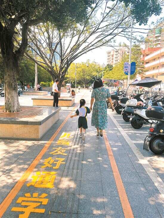 新快报记者了解到,增城区提出建设儿童友好通学路径,内容包括打造学径空间、道路空间景观改造、人行道护栏加装和交通配套改造等,并选定荔江路(荔江小学)、明慧路(增中附属小学)为示范点。儿童友好通学路径的建设,还在一定程度上减轻了老师的负担。荔江小学老师崔馨心回忆道,以前放学时,低年级学生在校门外按班级等候家长,但往往会有部分家长分不清楚孩子所在的区域,便聚集在校门口继而造成拥堵。“现在划出了标识清晰的等候区,家长就知道应该在哪里接送孩子,也不会阻碍其他班级的通行,我们的工作也更轻松些。”崔馨心说。