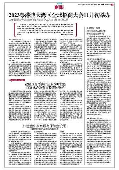 记者10月16日了解到,今年11月8日至9日,广东省政府与香港、澳门特别行政区政府将第二次携手,举办2023粤港澳大湾区全球招商大会,宣介横琴、前海、南沙、河套等重大合作平台的开放创新举措和重大政策利好。