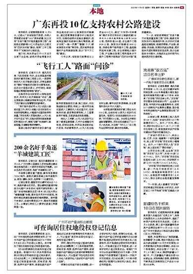 新快报讯 记者黄闻禹报道 11月3日,记者从广东省财政厅获悉,为深入贯彻落实省委“1310”具体部署,加力支持“百县千镇万村高质量发展工程”,省财政近期新增10亿元资金加大力度支持“四好农村路”建设,按照“三年工程两年干”实施农村公路攻坚。