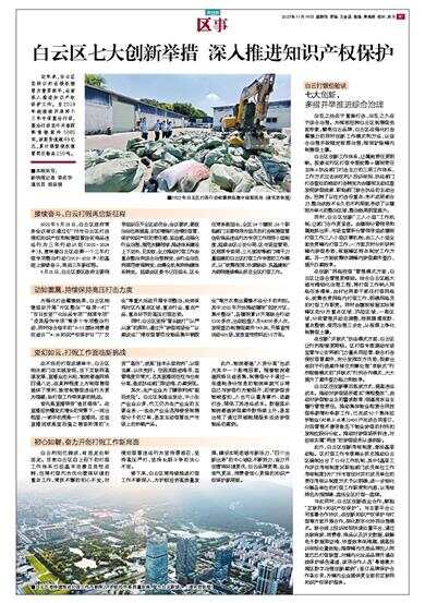 在创新“并联式”执法模式方面,白云区让行刑衔接更顺畅。区打假专班调动市场监管与公安两部门力量共同经营、联合打击侵权假冒案件,充分发挥双方优势,探索出有别于行政案件移交刑事处理“串联式”行刑衔接模式的“并联式”行刑合作模式,大大提升了案件查办能力和效率。