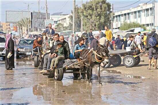 ■在加沙地带南部城市汗尤尼斯,人们乘驴车出行。新华社发