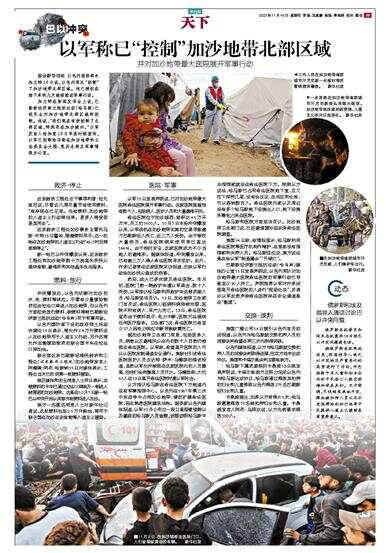 综合新华社电 以色列国防部长加兰特14日说,以色列军队“控制”了加沙地带北部区域。他已授权在接下来的几天继续推进军事行动。