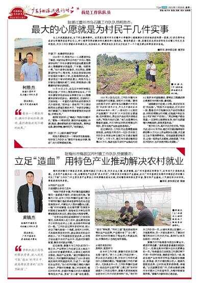 黄镇杰对于能够参与到这份事业中,感到非常自豪:“虽然是普普通通的派驻队员之一,但是也是乡村振兴这份光荣事业的一员。”他希望自己在派驻工作期仅剩下不到一年的时间里,继续坚守驻扎一线,推动当地产业扶持项目和各项基础设施建设,多渠道、多方式增加群众收入,继续巩固脱贫成果,让村民有更多获得感、幸福感。“以后就算回到广州,仍然会继续当梅州乡村振兴工作的宣传员,为梅州衔接发展资源。”黄镇杰对新快报记者说道。