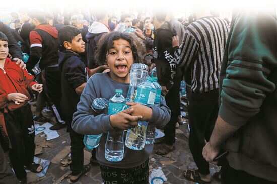 ■11月22日,以色列和哈马斯达成为期4天的停火协议,加沙地带将于当地时间23日上午10时起停火。这是21日,加沙地带南部城市汗尤尼斯的民众在领取饮用水。新华社发