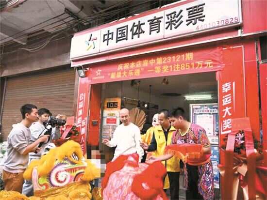 11月14日,位于广州市黄埔区永和街道横坑华智街十一巷2号的4401030828实体店门前锣鼓喧天,醒狮起舞。鲜艳的横幅、喜报,娇嫩的鲜花把店面装点得喜气洋洋,附近居民纷纷驻足观看。原来是广州市体育彩票管理中心为其中出第23121期超级大乐透一等奖851万元,举行简单而隆重的庆祝仪式,仪式上,广州体彩业务部负责人向实体店代销者颁发“幸运实体店”牌匾。