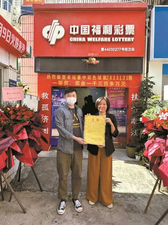 新快报讯 记者陆妍思 通讯员徐荣报道 11月14日,珠海市香洲区吉大海湾花园第44030277福彩销售站点传出喜讯,该站点售出的一张“7+2”自选复式票中出双色球第23131期1注一等奖特别派奖,奖金合计1359万元。
