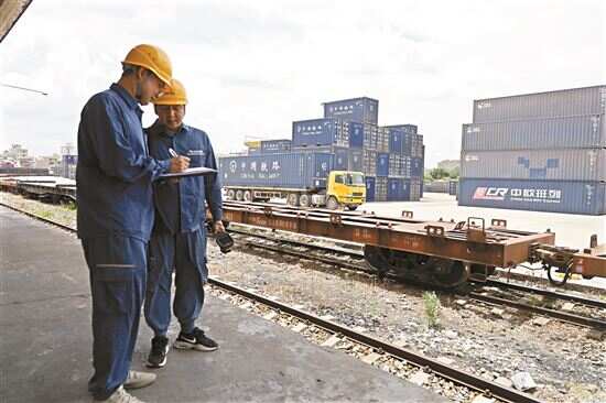 古有丝绸之路驼铃阵阵,今有“钢铁驼队”驰骋不息。近日,在广东省东莞市常平站内,大卡车的发动声、集装箱的装卸声和龙门吊的作业声融汇交织,奏出贸易发展的协奏曲。印着“中欧班列”字样的深蓝色集装箱在这里集结,陆续被运上一列长型列车,随后从常平站缓缓驶出。该趟班列运载的货物主要为新能源汽车。