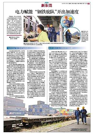 东莞东北区供电局聚焦办电提速、优质服务、可靠供电,为常平站货运站场定制改造方案,建立“点对点”保供电服务机制,以可靠电力打通中欧班列新通途。在常平站改造之初,该局组织党员服务队前移服务关口,主动上门对接,受理了常平站货运站场多宗客户工程的报装申请。
