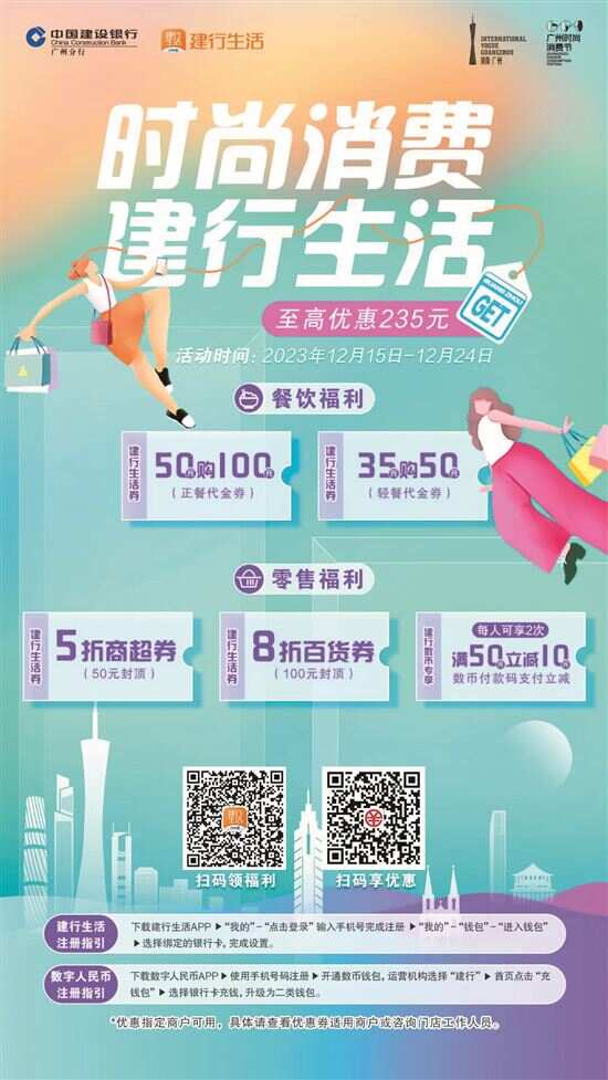 据悉,在即将举办的广州时尚消费节活动期间,建行广州分行以“建行生活”APP为主阵地开设时尚消费节线上专场,并以“五专”组合拳打造时尚消费新玩法:配套500万元专项权益资源,开展“时尚消费、建行生活”专场活动,搭建“线上领券、线下消费”专设场景,提供建行生活代金券及数字人民币立减金等专属优惠,推出“善营·时尚贷”等专项金融产品。同时,联动北京路广百百货、白云百信广场、海珠保利广场、番禺四海城、荔湾永庆坊等五大区域开展集吃喝玩乐于一体的促消费行动,多措并举激发时尚消费澎湃动能。