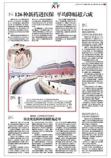 据新华社电 2023年国家医保药品目录13日在京发布,此次调整共有126个药品新增进入国家医保药品目录,其中肿瘤用药21种,新冠、抗感染用药17种,糖尿病、精神病等慢性病用药15种,罕见病用药15种等;同时调出1种即将撤市的药品。谈判或竞价成功的药品价格平均降幅61.7%。