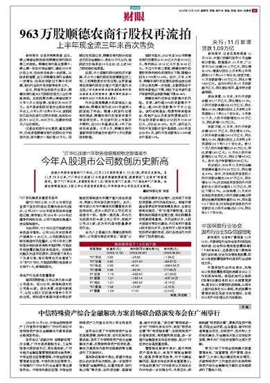 连续六年财务造假的*ST华仪,12月13日股价收报0.55元/股,再创历史新低。自11月28日以来,*ST华仪已连续12日收盘价跌破股票面值,提前锁定“1元退市”的面值退市。除了*ST华仪外,目前股价低于1元/股的还有*ST泛海、*ST柏龙和*ST新海。全面注册制落地后,A股上市公司进退皆成常态,今年的退市公司创出历史新高。