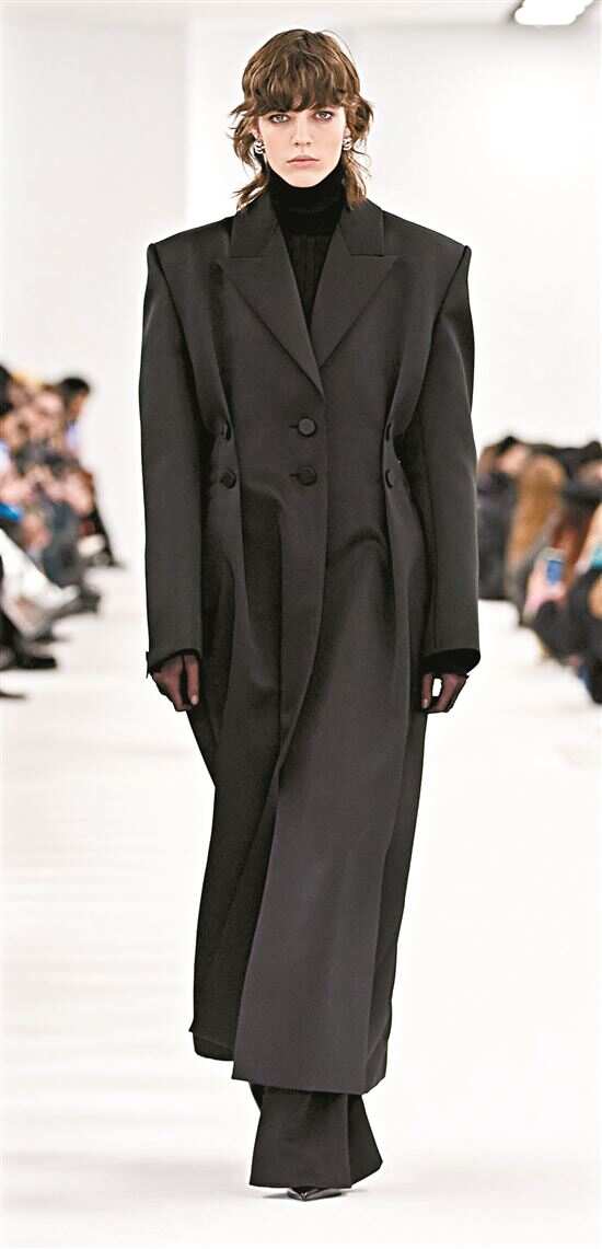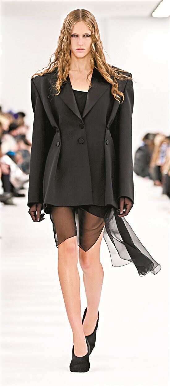 ■Givenchy 2023秋冬系列在西装常见的垫肩廓形上增加了捏折细节,以纽扣作为收腰设计增加折叠感,薄纱、褶皱等元素的加入让服装也流动起来。(Givenchy 2023秋冬)