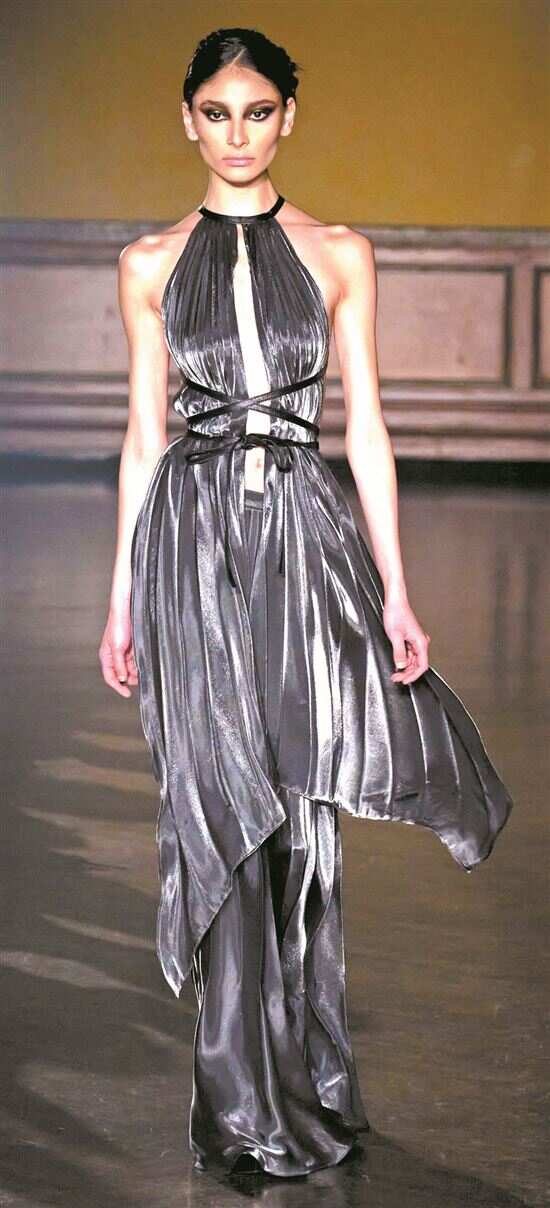 不同类型的褶皱带给服装不同的装饰效果,重点表现在不同角度的光影折射、明暗虚实之间的过渡以及色彩的交融变化,褶皱的平面视觉效果通常会随躯体空间弧度、肢体运动方向等产生的光线变化而变化,而这种神秘变化正是平面与立体相结合的曼妙之处。