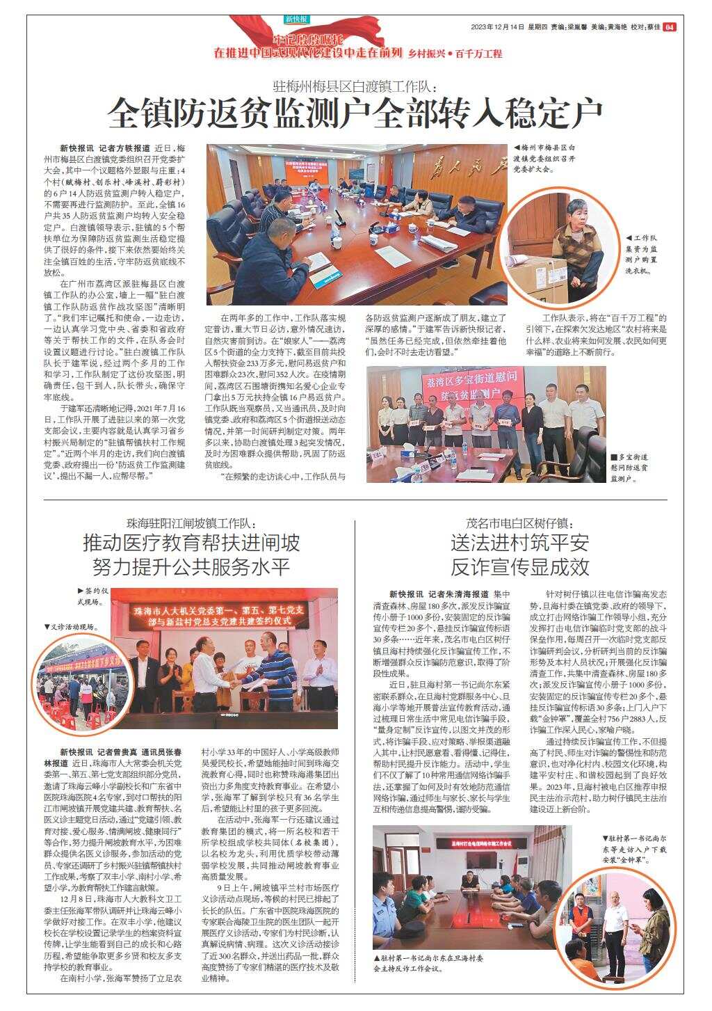 驻梅州梅县区白渡镇工作队:全镇防返贫监测户全部转入稳定户