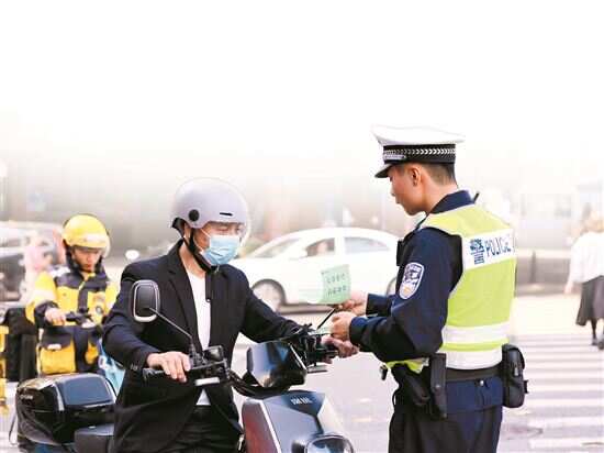 12月15日,《广州市人民政府关于电动自行车通行管理措施的通告》(简称《通告》)正式实施。市中心部分路段在规定时间内禁止电动自行车骑行。然而,据记者观察,在新规实施第一天,有部分骑行者对新规不了解,还有“冲卡”情况发生。对此,广州交警在相关路段予以执法并宣讲新规,并派发安全出行的传单。