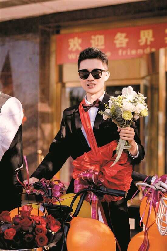 “我们用共享单车接亲吧,有创意又热闹!”阿喜兴致勃勃地和家人描述着画面,并成功获得了大家的一致认同。婚礼前一天,阿喜的朋友们齐齐出动,扫来八辆共享单车,再用五颜六色的气球、鲜花和彩带装点车身。考虑到共享单车无法载人,新娘新郎又准备了电动自行车作为主婚车。