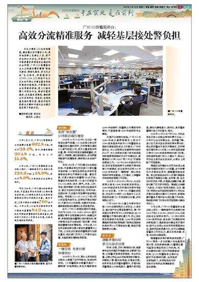 为全力确保110生命线畅通,解放警力回归警务工作,更好地保障人民群众人身、财产安全和公共安全,为推动广州市高质量发展营造安全稳定的社会环境,广州110报警服务台大力构建非警务警情“智能化建设、精细化服务、多元化分流”生态体系,积极推动与12345、119、120热线平台以及水电气等公共事业服务热线的高效对接联动,不断强化社会应急联动效能,使110接处警工作更加专业,联动处置更高效,为民服务更精准,确保群众诉求有响应、有落实,在减轻基层接处警负担、推动矛盾纠纷源头化解和市域社会治理方面发挥了积极作用。