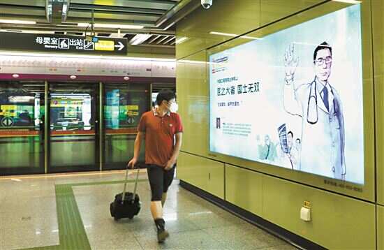 ■36位院士的手绘海报在全市11区地铁站进行投放展出。新快报记者 龚吉林/摄