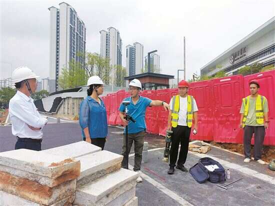 ■10月19日,开发区水质监测中心主任李弘带队到知识城南方医院永久用水接驳工程现场指导测绘工作。