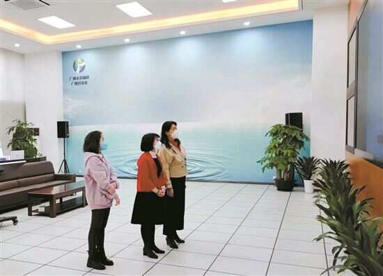 ■1月21日(除夕),黄埔区水务局桂红艳局长(右二)到开发区水质监测中心调度室查看春节期间供水调度、加压站运行等情况,并向在岗员工表示慰问。