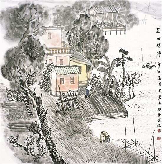 数十年来,始终如一而画面却腾踔万象,这正是他水乡画意境创造的始基。鸟鸣珠箔,群花自落,是他意境表现的完成。明代画家李日华在《紫桃轩杂缀》里提到,凡画有三:一曰身之所容,二曰目之所瞩,三曰意之所游。而这三点,在叶其嘉的画中,无不体现。
