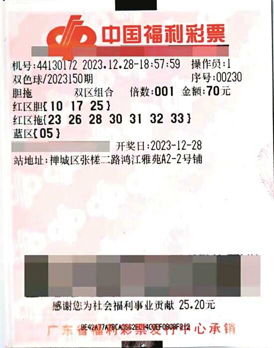 2023年12月28日,双色球第23150期开奖,当期全国共中出7注一等奖,其中1注花落佛山市禅城区张槎街道44130172福彩销售站点。中奖彩票是一张1倍“3+7+1”自选胆拖票,共中得1注一等奖、12注三等奖、18注四等奖、4注五等奖,奖金合计8114602元。近日,幸运儿郭先生(化姓)和太太现身,领走2023年佛山最后一个大奖。