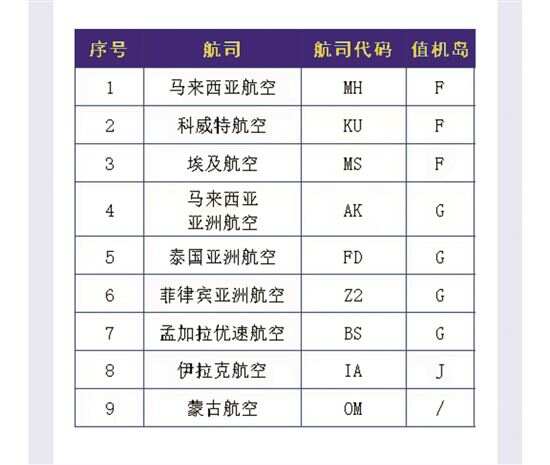 各航司出境值机一览表
