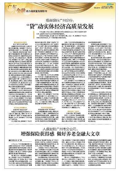 据了解,作为一家金融央企驻穗机构,人保财险广州市分公司坚持践行“人民保险,服务人民”的使命,助力广州地方经济腾飞和社会和谐稳定发展。2023年全年累计提供各类风险保障金额达19.3万亿元,着力发挥保险经济“减震器”和社会“稳定器”的功能,为广州市大抓经济、大抓产业、大抓投资、大抓招商,继续在高质量发展方面发挥“排头兵、领头羊、火车头”作用贡献人保力量。