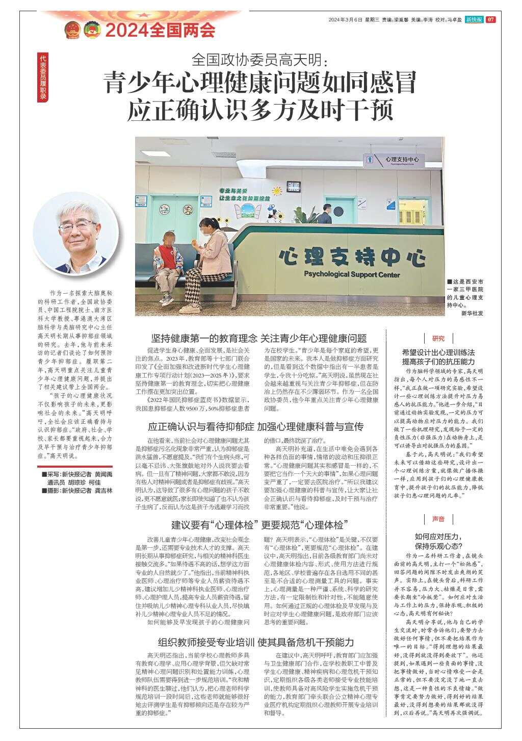 青少年心理健康问题如同感冒 应正确认识多方及时干预