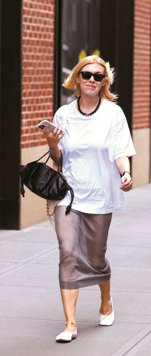 宽松衬衫或T恤与性感透视直筒裙的搭配,整体造型增加了随性感。