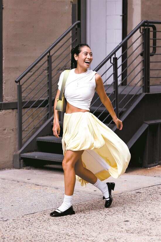 飘逸与不规则下摆设计是今年春夏半裙单品的特色之一。