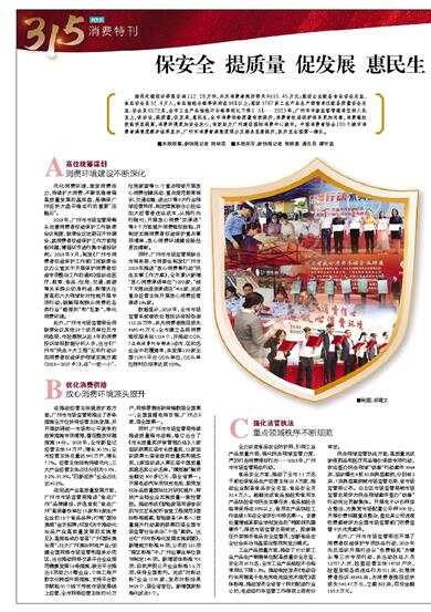 此外,广州市市场监管局会同联席会议其他29个成员单位及市民政局、市检察院从近3年的消费投诉举报数据分析入手,出台《广州市“民生十大工程”五年行动计划消费者权益保护领域实施方案(2023—2027年)》,在“一老一小”、住房家装等11个重点领域开展放心消费创建活动,重点规范教育培训、交通运输、进出口等9大行业领域经营秩序,制定措施联合公检法加大经营者违法成本,从推行先行赔付、开展放心消费“双承诺”等9个方面提升消费维权效能,并制定实施消费者权益保护重点事项清单,放心消费环境建设路径更加清晰。