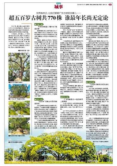 今年,广东将继续探索古树名木保护创新模式,打造古树名木主题公园,通过对古树养护复壮,在周边建设休憩平台、科普宣传长廊等措施,因地制宜建设集保护、科普、宣教、休闲功能于一体的古树公园20个。