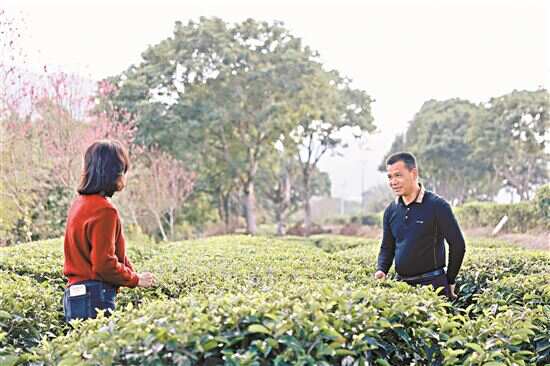 ■潮州市湘桥区意溪镇党委书记陈奕煌(右)在茶园走访调研。