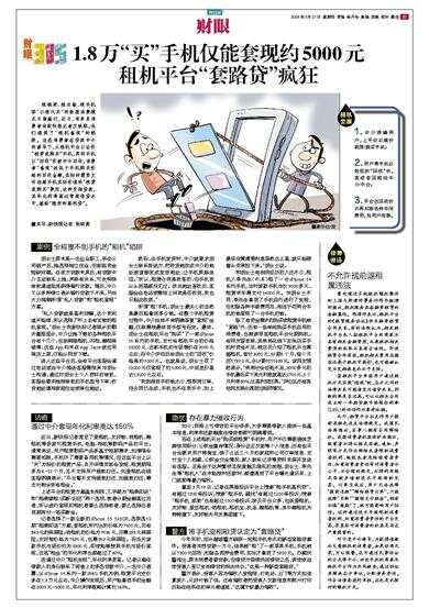 租钢琴、租衣物、租手机等“以租代买”的新型消费模式日渐盛行,近日,有多名消费者向新快报记者反映称,他们遇到了“租机套现”的陷阱。这些消费者在贷款中介的诱导下,从租机平台以全价“租赁或购买”手机,再将手机以“回收”价被中介回收,消费者“套现”远低于手机购买价格的回收金额,实际却需要支付远超手机实际价值的“租赁或购买”费用,这种变相贷款,其年化利率高过常规借贷水平,堪称“隐形的高利贷”。