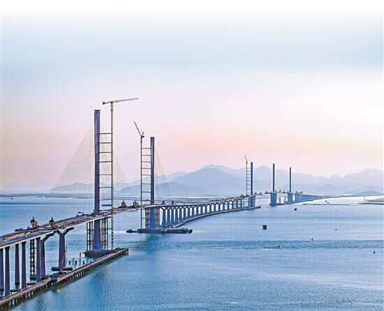 ■3月20日,经过近4小时的精调和锁定,黄茅海跨海通道项目高栏港大桥顺利合龙,这是黄茅海跨海通道2座主桥中首个合龙的主桥。通讯员供图