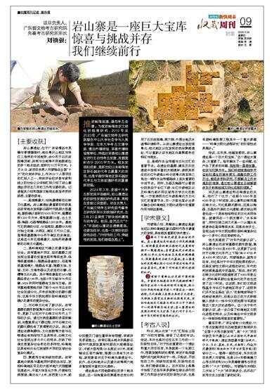 2024年3月,全国十大考古新发现评选期间,岩山寨遗址的阶段性发掘和研究成果,亮相在全国公众面前。项目负责人、广东省文物考古研究院先秦考古研究所所长刘锁强研究员,在3月23日接受了新快报收藏周刊的专访。他说,虽然这次“十大”评选岩山寨项目遗憾落选,但参加终评,也是一次很好的阶段性总结,“开创性的工作、突破性的发现,我们继续在路上”。