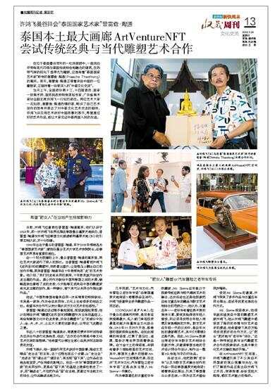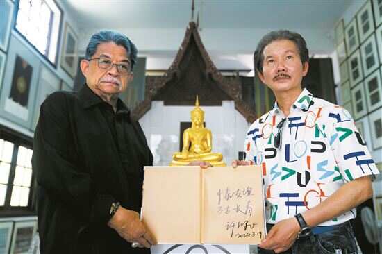 ■许鸿飞(右)与有着“泰国国家艺术家”称号的普雷查·陶通(Preecha Thaothong)共商合作计划。