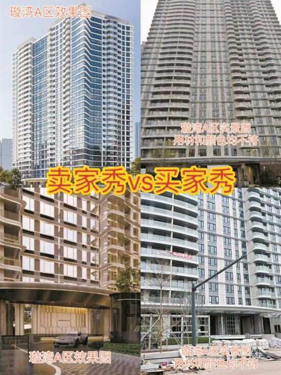 “当初购房时,无论是宣传效果图还是销售人员的口头表述,都说会有大面积的铝板幕墙覆盖,看起来很高端漂亮。可如今,璇湾A区的外立面只有一小部分铝板装饰和大面积的真石漆,如果是这样的外立面效果,我当初是不会选择购买这里的。”江先生说道。