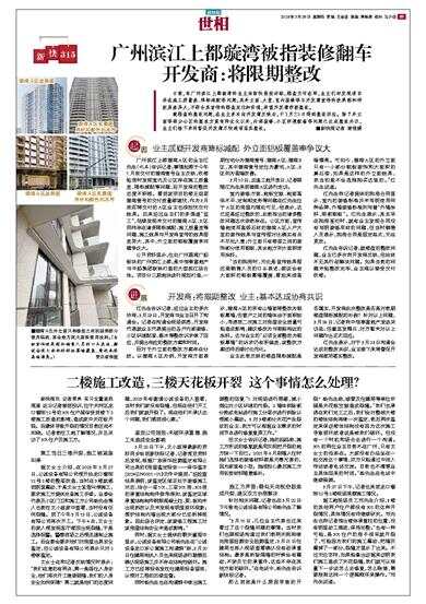 “3月15日,几位业主代表也过来看过了这个裂缝问题的事情。当时我们也跟现场沟通过我们前两天刚刚做完房屋检测安全检测鉴定,3月21日住建局也派人现场查看确认没有动承重结构。最多是拆除隔墙的时候会有震动,不涉及它的承重件,这些不存在其他方面的破坏。”在电话中,杨先生告诉新快报记者。