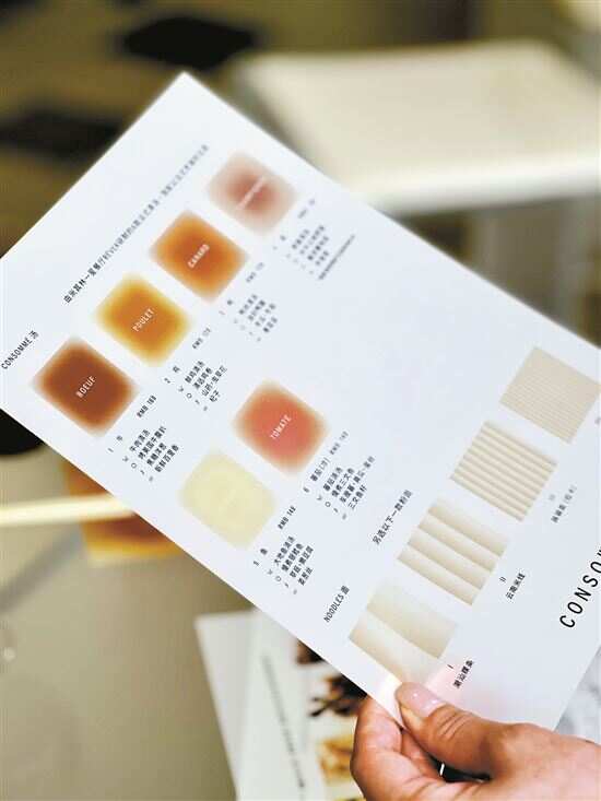 菜单是三张好像幻灯片的卡纸,分别注明着清汤、饮品、小食的款式。