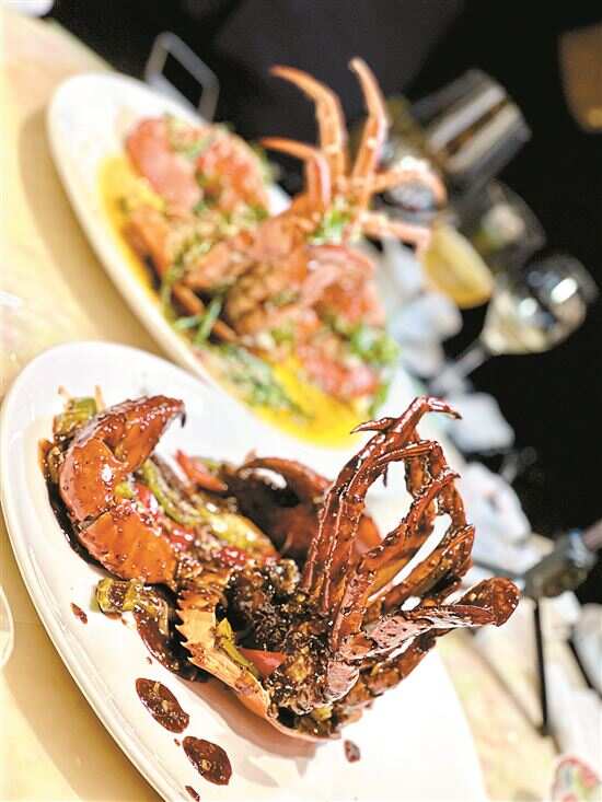 ■黑胡椒大肉蟹,后为牛油蒜香口味。