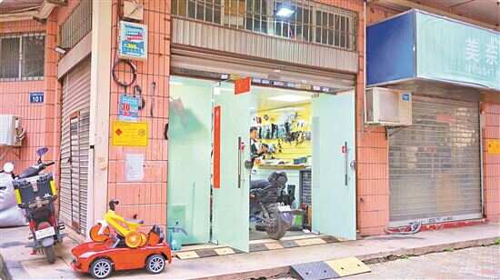 ■白云区某小区附近一电动自行车改装店位置隐蔽,未悬挂招牌。