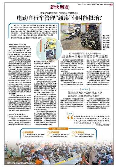 新快报记者了解到,近两年,公安和监管部门都严查私自改装电动自行车,但解锁、改装和加配的情况仍屡禁不止。