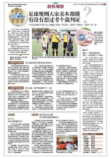 李克透露,广州足协每年的开班计划大概是三级班一年四场、二级班一年两场、一级班一年一场。去年,广州足协开办了5人制的一级裁判班,今年2月又开办了11人制的裁判班。